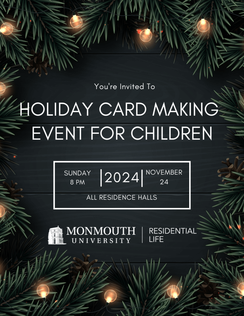 Tis the season to brighten the life of a young child. The Office of Residential Life will be hosting a make your own holiday card/writing campaign in all of the residence halls on Sunday, November 24 from 8-10 pm. Holiday cards will be distributed to needy local children.
