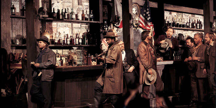 Puccini’s musical vision of the American West is vividly brought to life in the Met’s atmospheric production. Deborah Voigt is Minnie, the “girl of the golden west” and owner of a bar in a Californian mining camp. Marcello Giordani sings Dick Johnson, the bandit-turned-lover hunted by the cynical sheriff Jack Rance (Lucio Gallo), who wants Minnie for himself. Complete with whiskey-drinking cowboys, gunplay, a poker game, and a snowstorm, La Fanciulla del West is Puccini at his most colorful. (originally transmitted January 8, 2011).