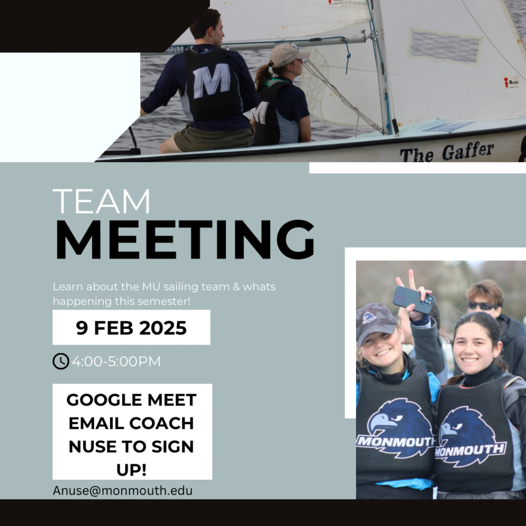 Learn more about the sailing team here at Monmouth University. No experience necessary to join! Join our travel team and compete against other colleges and universities along the east coast in our MAISA division. Email coach Nuse at Anuse@monmouth.edu to sign up and get the google meet link!