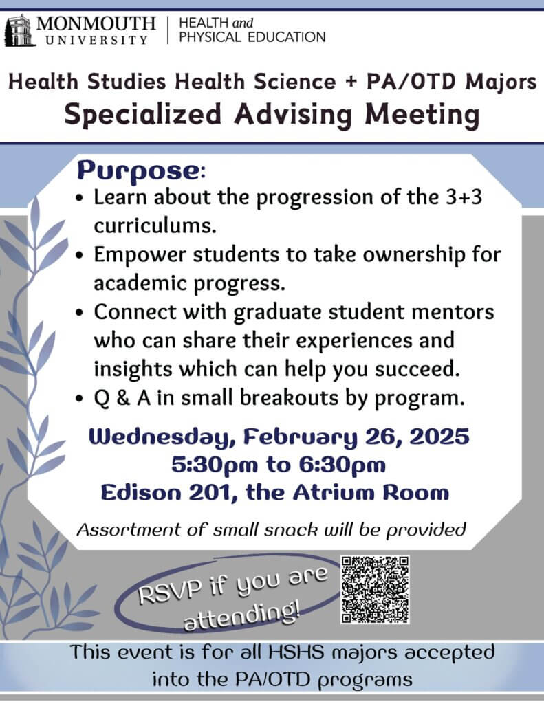 Specialized Advising Meeting for Health Studies Health Science OT/PA Majors
