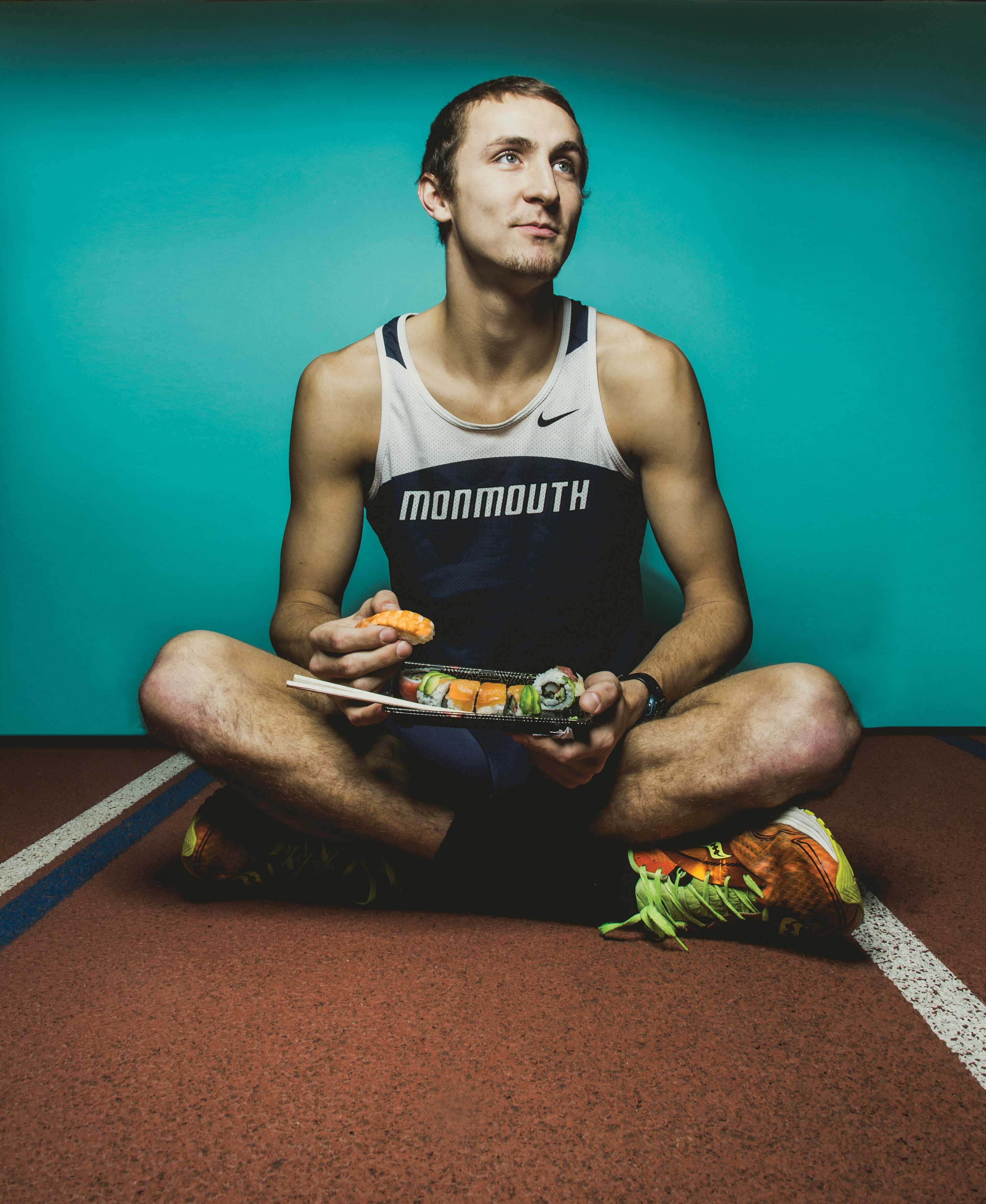 Capwell, the national runner-up in the 800 meters at the 2015 indoor NCAA Championships, says his routine of eating sushi the night before meets started back in fourth grade after he and his dad sampled some at an Asian market. Nowadays, sushi is reserved for nights before big races—“it’s a bit pricey,” says Capwell—but there’s another element to his training routine that likely plays a larger part in his success: exercise science.