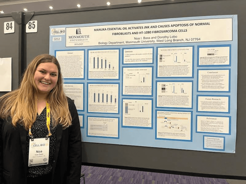 Four Monmouth alumni and two faculty members recently published the article, “Manuka Essential Oil Triggers Apoptosis and Activation of c-Jun N-Terminal Kinase in Fibroblasts and Fibrosarcoma Cells” in MDPI’s Molecules Journal (Vol. 29, Issue 21, Oct. 2024).
