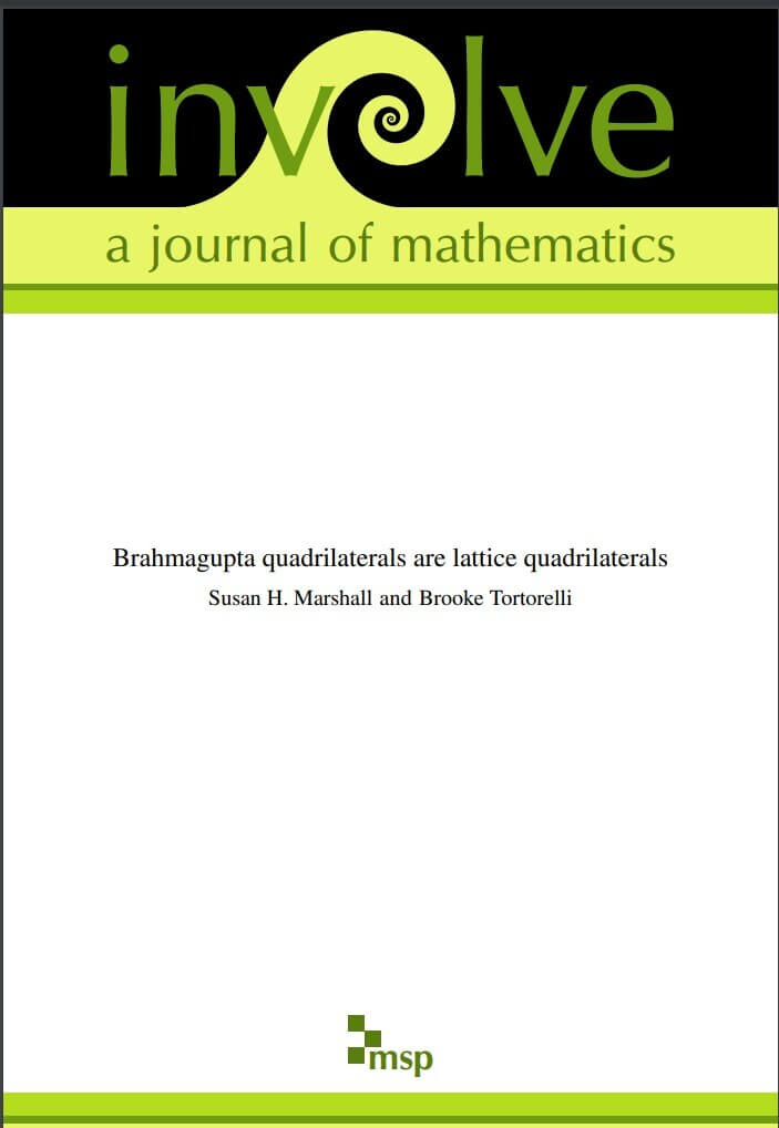 “Brahmagupta Quadrilaterals Are Lattice Quadrilaterals,” generalizes a 2001 result about triangles to a special class of polygons—known as Brahmagupta quadrilaterals—with a method of proof combining techniques from geometry, complex numbers, and number theory.