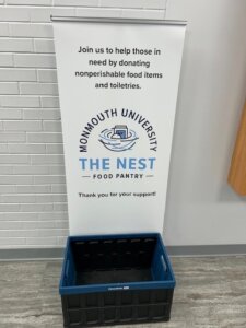 Every year, approximately 30% of the students who attend a college or university in the US, experience some form of food insecurity. After paying tuition, buying books and/or paying a monthly rent, many students are left wondering whether or not they will have enough money to buy food or personal items such as toiletries. It is with that in mind, that the Student Government Association (SGA) created The Nest food pantry to support Monmouth University undergraduate and graduate students who do not have a meal-plan. Students who do not have any form of meal-plan can come to the Nest to select non-perishable food items (i.e., pasta, canned foods, cereals, crackers, etc.) beverages, and toiletries (i.e., toothpaste, shampoo, conditioner, toilet paper, etc.).