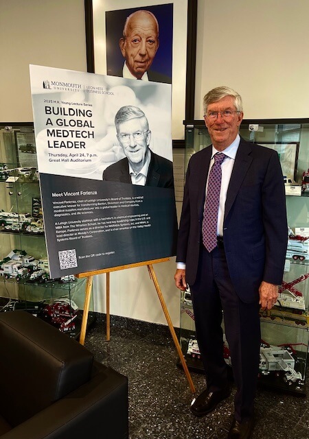 The H.R. Young Lecture Series, an annual event sponsored by the Leon Hess Business School, has an outstanding track record of bringing the most outstanding people from all walks of life to our university. This year’s lecture “Building a Global Medtech Leader” featured Mr. Vincent Forlenza, retired Executive Chairman and CEO at Becton, Dickinson & Company.