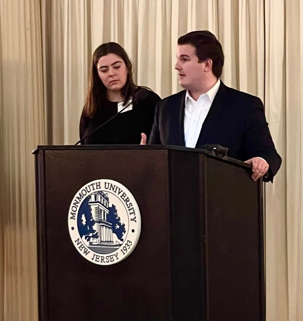 Students collect $1,000 Business Council Awards in Leadership, Resilience, Innovation and Societal Impact.Vera Gordinier presents Kiernan Gallagher with the Karl Gordinier Societal Impact Award.