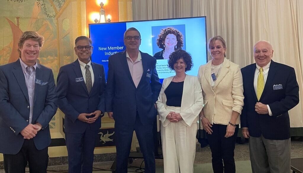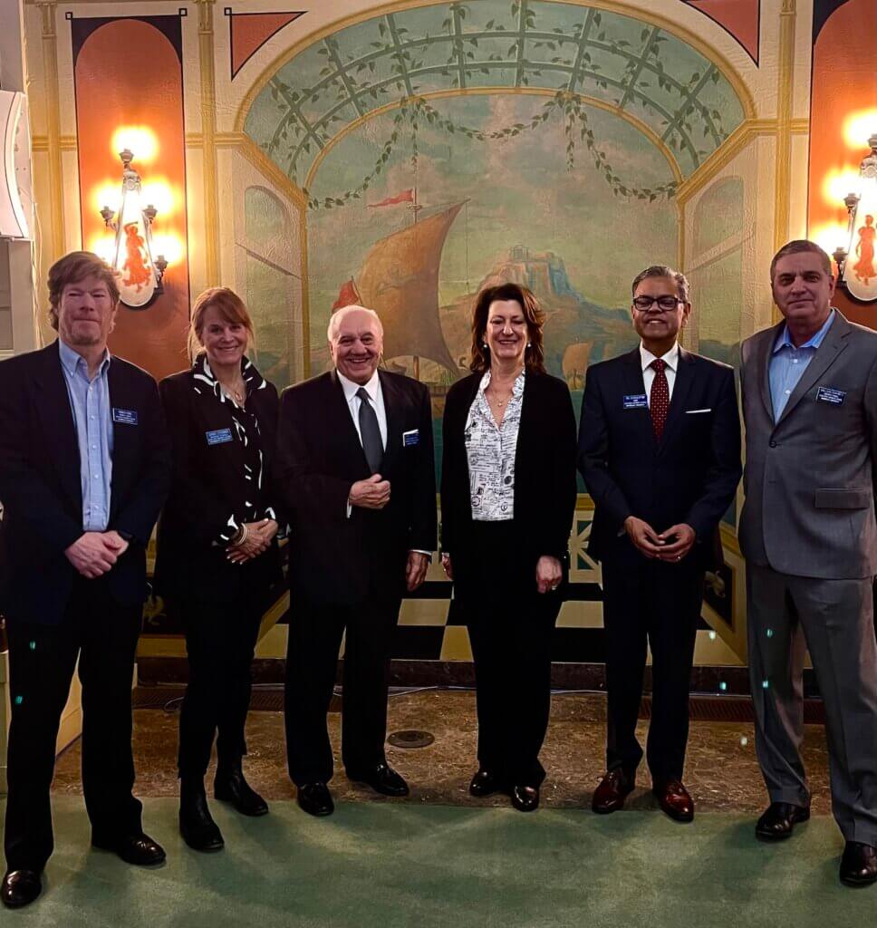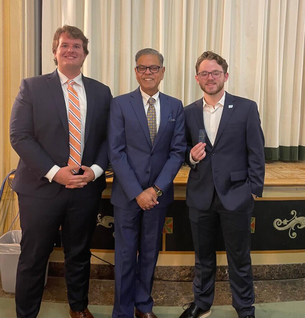 Dean Raj with Tanner Purdy and Andrew McGovern who presented an update on Park Shark, a student start-up business.Student leaders interact with Business Council members.Mary Rower (fourth from left) is inducted as Business Council’s newest member.