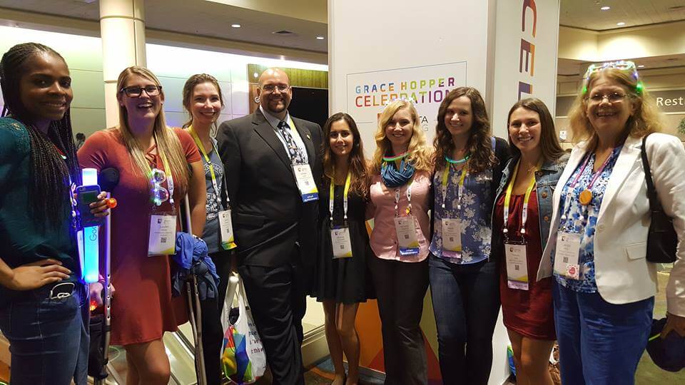 From October 4-6, eight students and two faculty members traveled down to Orlando, Florida for the Anita B.org Grace Hopper Celebration of Women in Computing. This event is a haven for all women in the computing fields to get together and network and simply enjoy the atmosphere of women in technology who share the same interests and similar skills. There were approximately 18,000 women and men who attended the event. Out of this we estimate only 5% of the attendees were male.