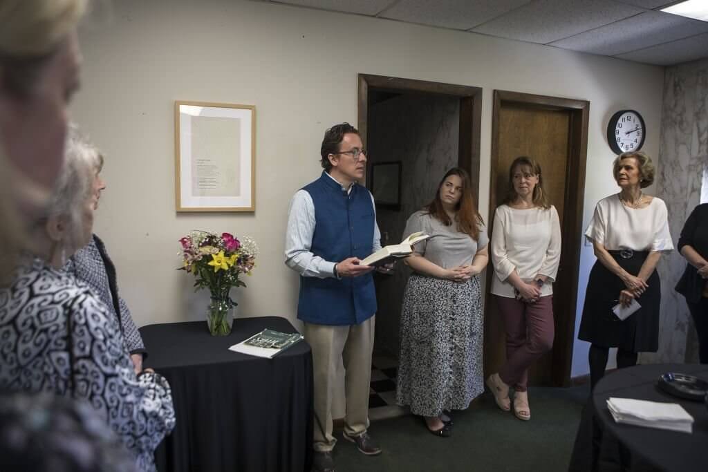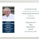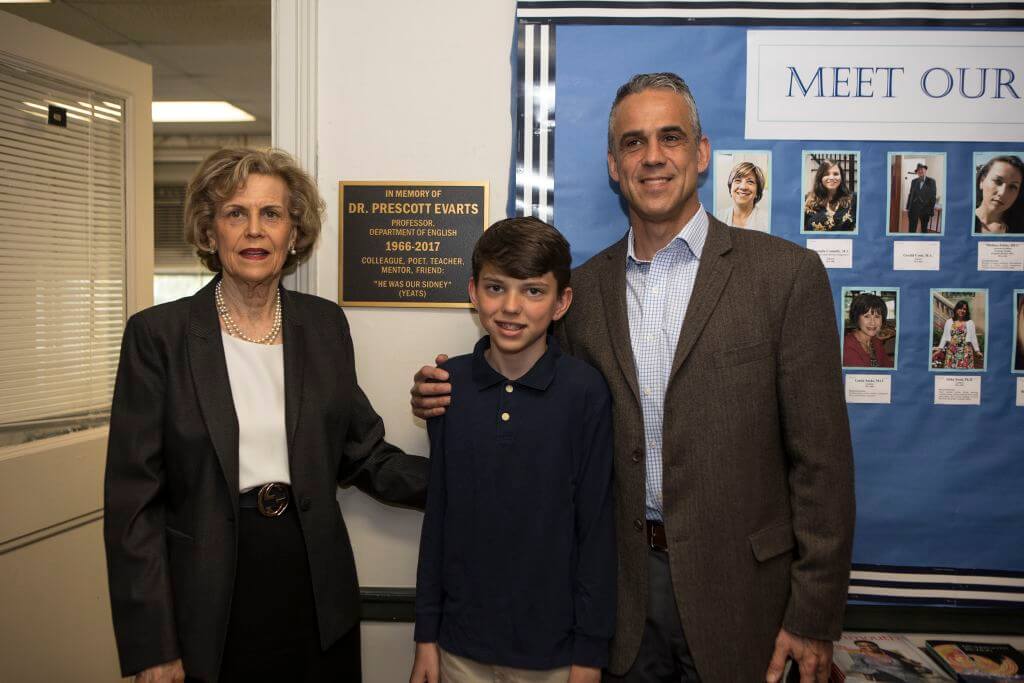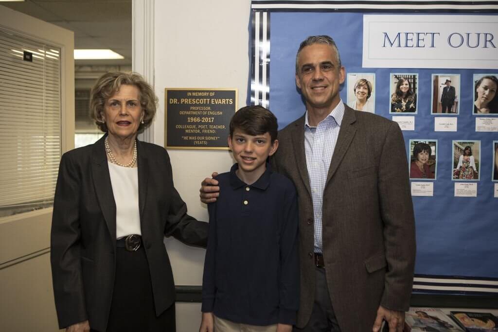 Speakers at the dedication ceremony included Dr. Susan Goulding, Chair, Associate Dean Michael Thomas (who read poetry by Yeats and Evarts), Dr. Sue Starke, Mrs. Janine Evarts, and son Geoff Evarts.