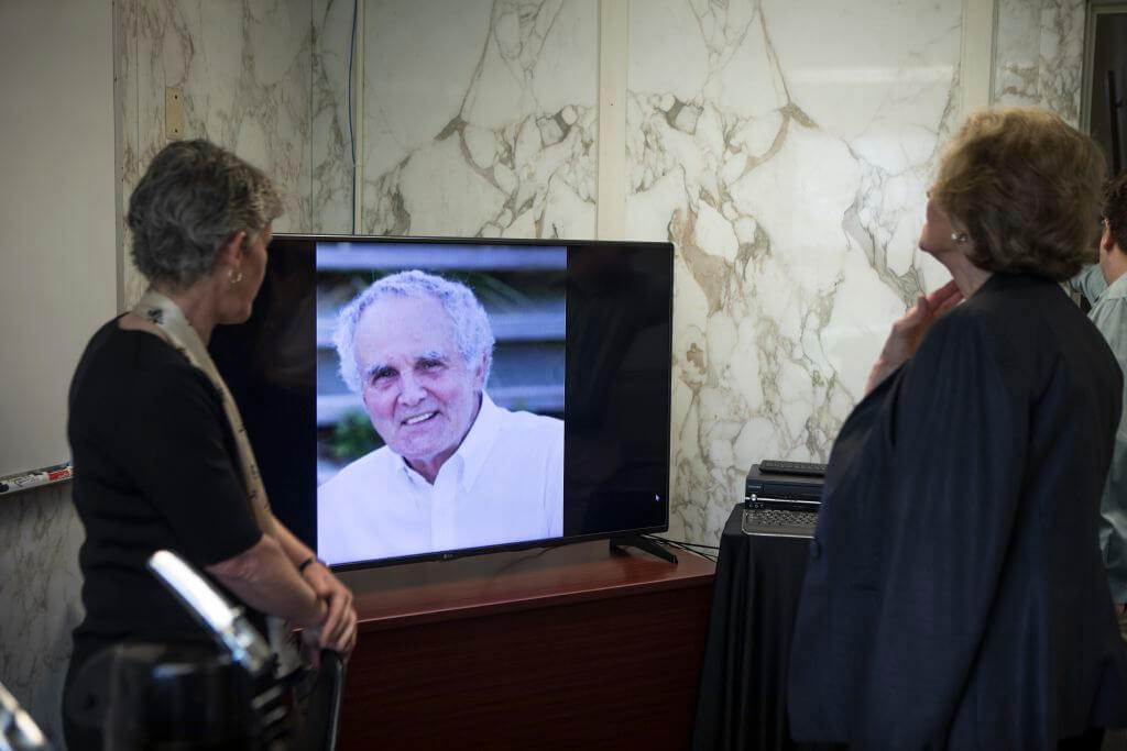 Dr. Susan Goulding concluded her remarks, stating, “It is a pleasure to see this room where Dr. Evarts spent so much time meeting with students and faculty, 51 years, in the hall where his presence graced us all, dedicated in his memory.”