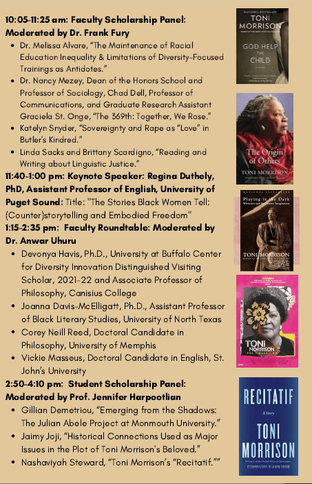 May 10, 2022April 12, 2022March 22, 2022February 22, 2022; Toni Morrison Day eventJanuary 18, 2022Dec. 14, 2021Nov. 2, 2021Oct. 12, 2021Sept. 21, 2021