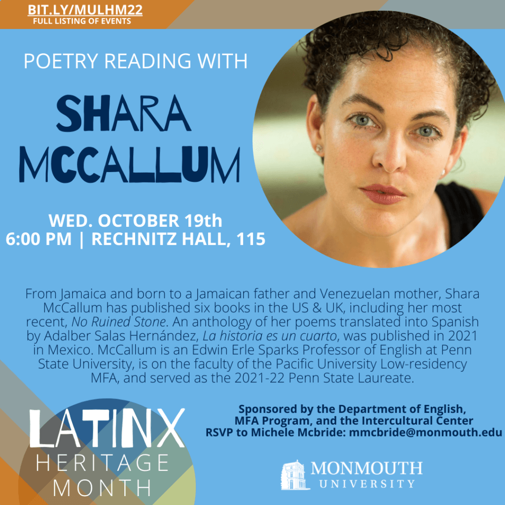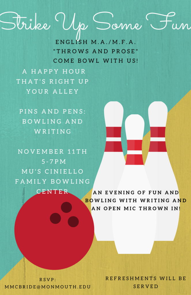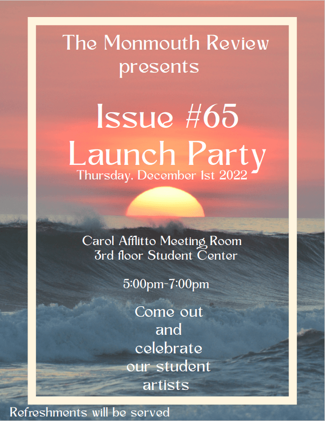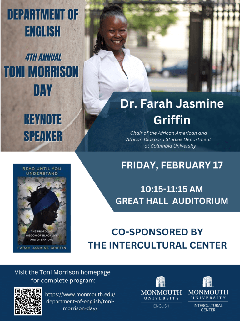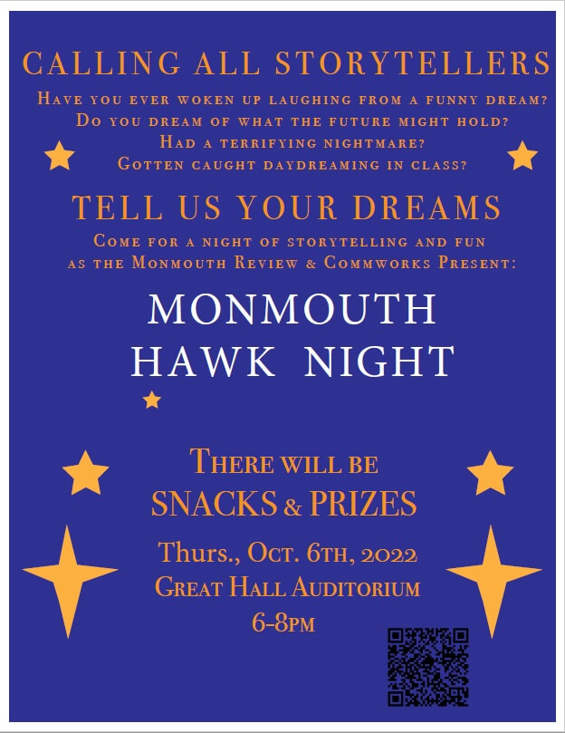 Monmouth Hawk Night – October 6, 2022Poetry Reading with Shara McCallum – October 19, 2022“So You (Might) Want To Go To Grad School” Seminar, December 7, 2022, 4:30-5:30pm on ZoomEnglish M.A./M.F.A. hosts “Throws and Prose”, November 11, 2022Monmouth Review Launch Party Issue #65 – December 1, 2022Welcome Pizza Party for Fall 2022 Inductees, December 9, 2022M.A./M.F.A. Reading – December 16, 20224th Annual Toni Morrison Day – February 17, 20234th Annual Toni Morrison Day Schedule – February 17, 20234th Annual Toni Morrison Day Keynote Speaker, Dr. Farah Jasmine Griffin – February 17, 20234th Annual Toni Morrison Day Book Discussion, February 17, 2023 4th Annual Toni Morrison Day Book Discussion, February 17, 2023March 25, 2023April 11, 2023April 13, 2023Sigma Tau Delta Induction Ceremony, April 20, 2023Monmouth Review Launch Party, Issue #66 – April 25, 2023M.A./M.F.A. Reading – April 27, 2023“A Multimodal Presentation of Victorian Giftbooks & Anthologies,” May 1, 2023
