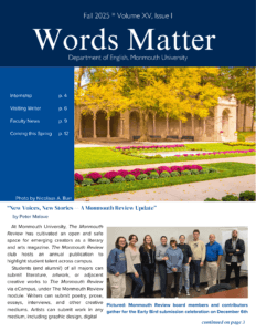 The Department of English is proud to publish a newsletter and journal highlighting the work and successes of the Monmouth University community.