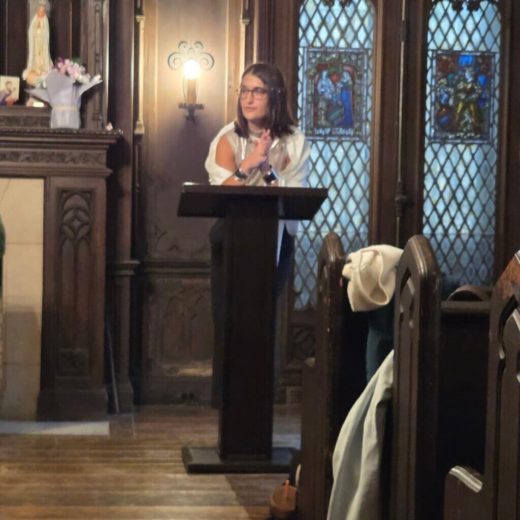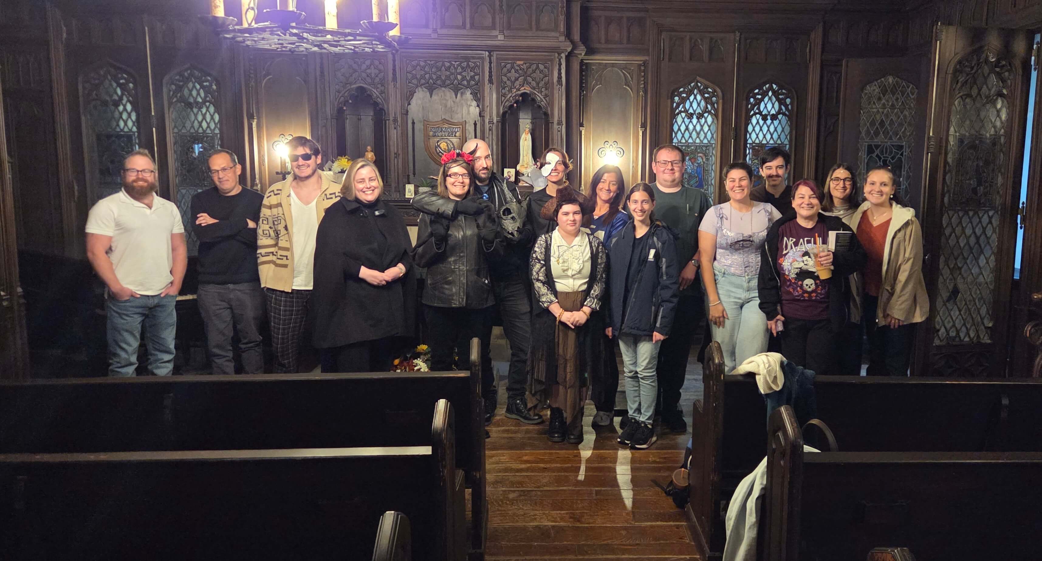 On Oct. 29, Sigma Tau Delta hosted its annual Ghost Stories in the Great Hall reading in the Walt Withey Chapel, welcoming members, faculty, students, and guests for an afternoon of spooky storytelling. The event was organized by the chapter’s executive board in collaboration with Beth Sara Swanson, faculty advisor and lecturer. Chapter president Gwyneth Finn opened the program with welcoming remarks, followed by a reading from adjunct faculty member Matthew Wedlock, whose award-winning piece, “The House Lager,” won a ghost story contest sponsored by the Asbury Book Cooperative.