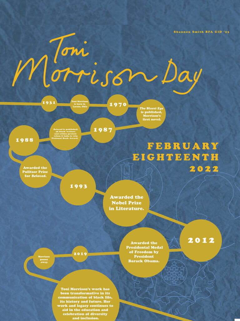 Please click on each poster image to view a detailed image of the presentation. Winners will be announced and posted prior to the start of this year’s Toni Morrison Day celebration.