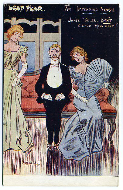 Use the available links at the end of this page to view an extensive collection of Leap Year postcards by year, artist, company, or overall theme.