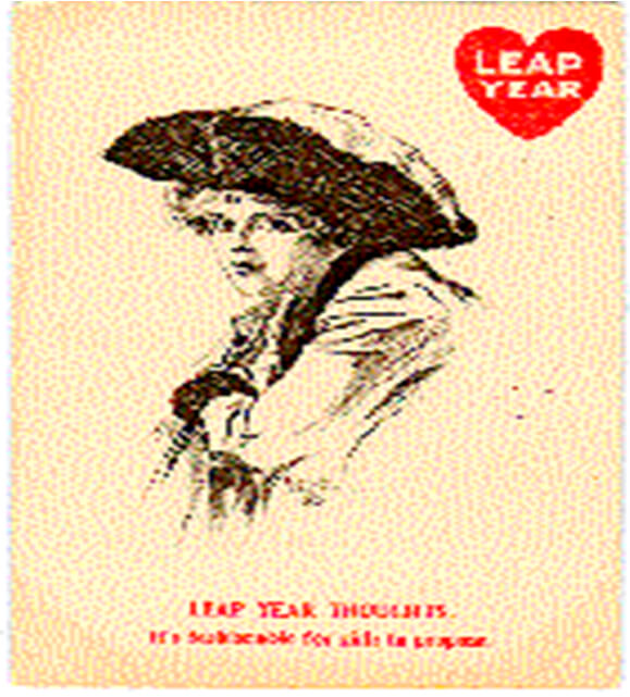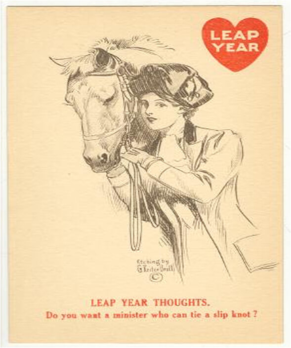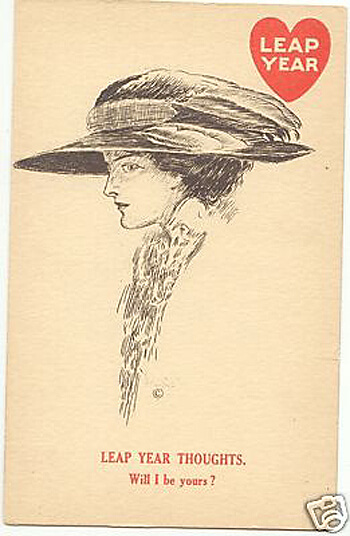 Use the available links at the end of this page to view an extensive collection of Leap Year postcards by year, artist, company, or overall theme.