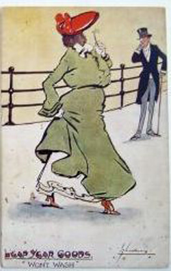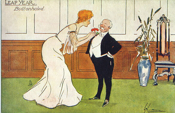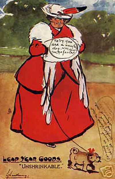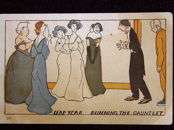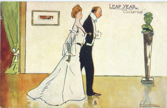 Use the available links at the end of this page to view an extensive collection of Leap Year postcards by year, artist, company, or overall theme.