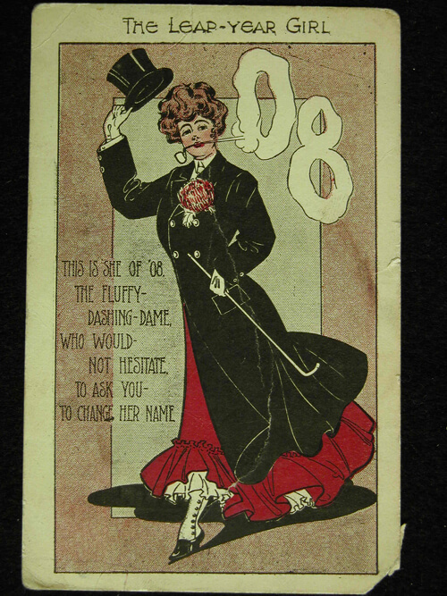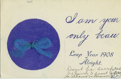 1908 Leap Year Postcard: “Please allow me to remind you of the fact that this is Leap Year 1908 From the one who loves you”
