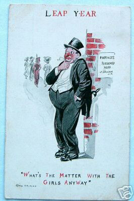 1908 Leap Year Postcard: What’s the matter with the girls anyway?