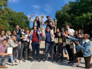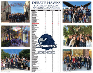 In 2020 the Monmouth University Debate Team won the novice point National Championship in the Cross Examination Debate Association (CEDA) policy debate rankings. The CEDA novice division includes teams from over 100 universities from across the nation and is comprised of non-scholarship debaters who generally have a year and a half or less debate experience. Debaters are categorized into three divisions dependent upon years of experience. When combining all three divisions, MU Debate finished 21st in the overall 2020 CEDA national rankings. The team competed in six weekend long debate tournaments, including the American Debate Association National Championship held in Las Vegas, Nevada in March of 2020. In 2020 team members also travelled to Mumbai, India to participate in a debate mentoring program as part of a U.S. Department of State grant awarded by the U.S. Consulate’s Office in Mumbai to create debate teams and train students in three Mumbai schools. The Debate Team has approximately 40 members and participating in debate is a great way to make new friends while honing transferable skills to careers in law, politics, business, and education. No previous debate experience is necessary. Please contact Dr. Joseph Patten at jpatten@monmouth.edu if you would like additional information about the Debate Team.