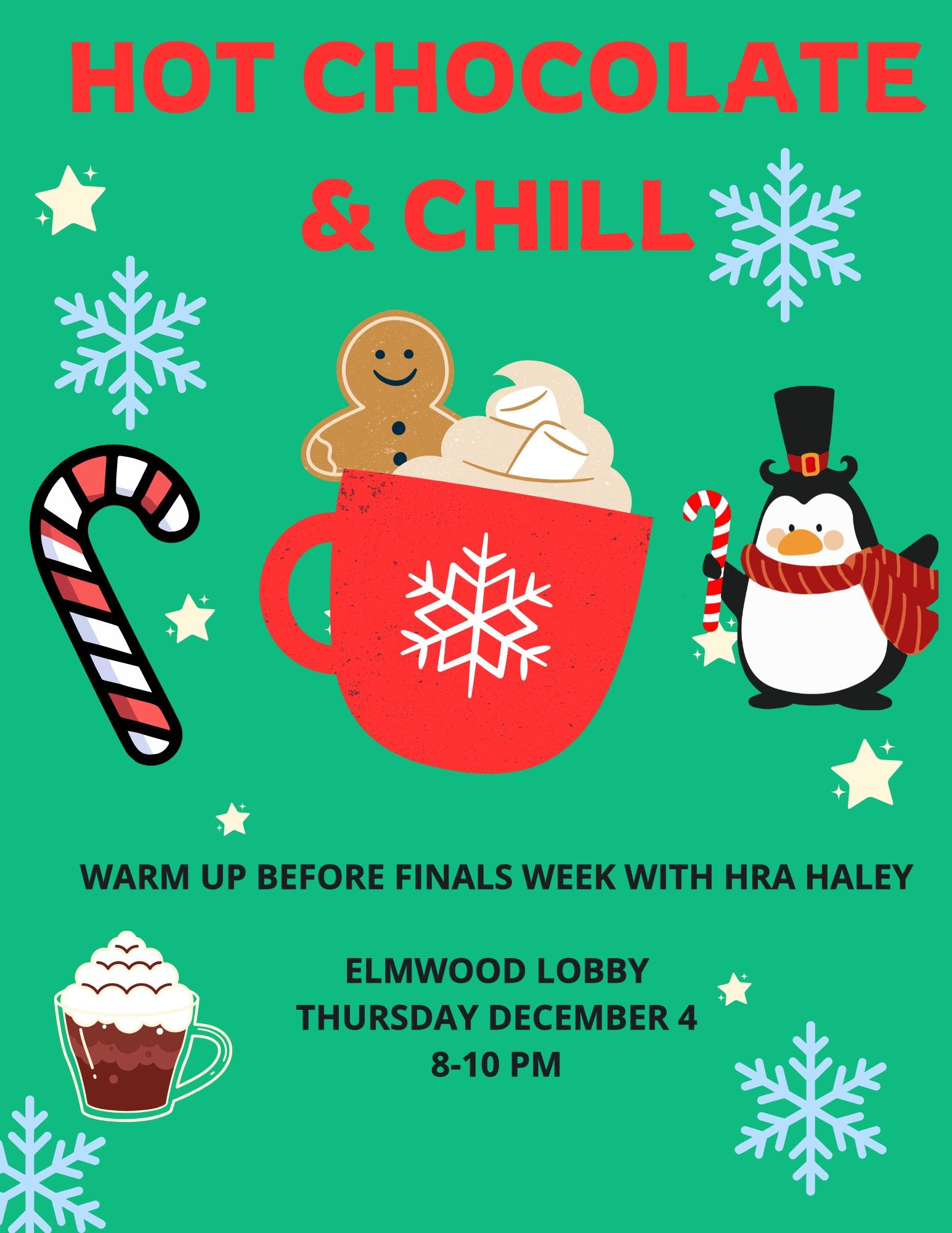 Come grab hot cocoa and warm up before finals week in Elmwood Lobby n—nEvent Details: https://campusgroups.monmouth.edu/rsvp?id=375605