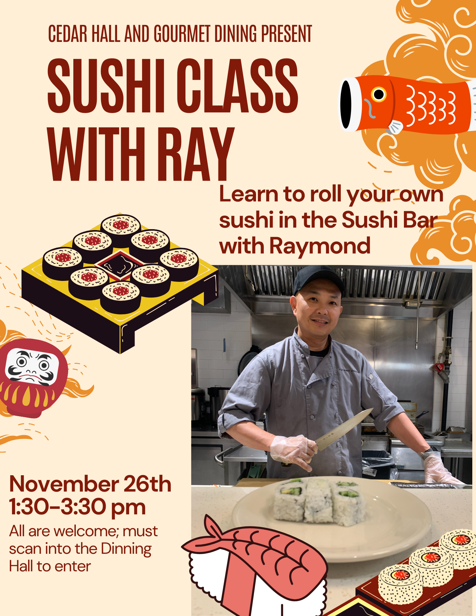An interactive class with Raymond the sushi guy where students can assemble and roll sushi. The program is in the Sushi Bar in the Magil Commons Dining Hall. All students […]