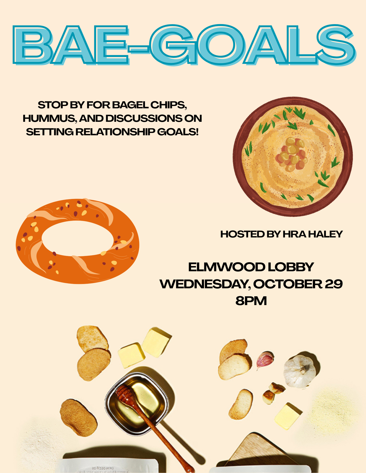 Stop by for bagel chips, hummus, and discussions on setting relationship goals!n—nEvent Details: https://campusgroups.monmouth.edu/rsvp?id=375485