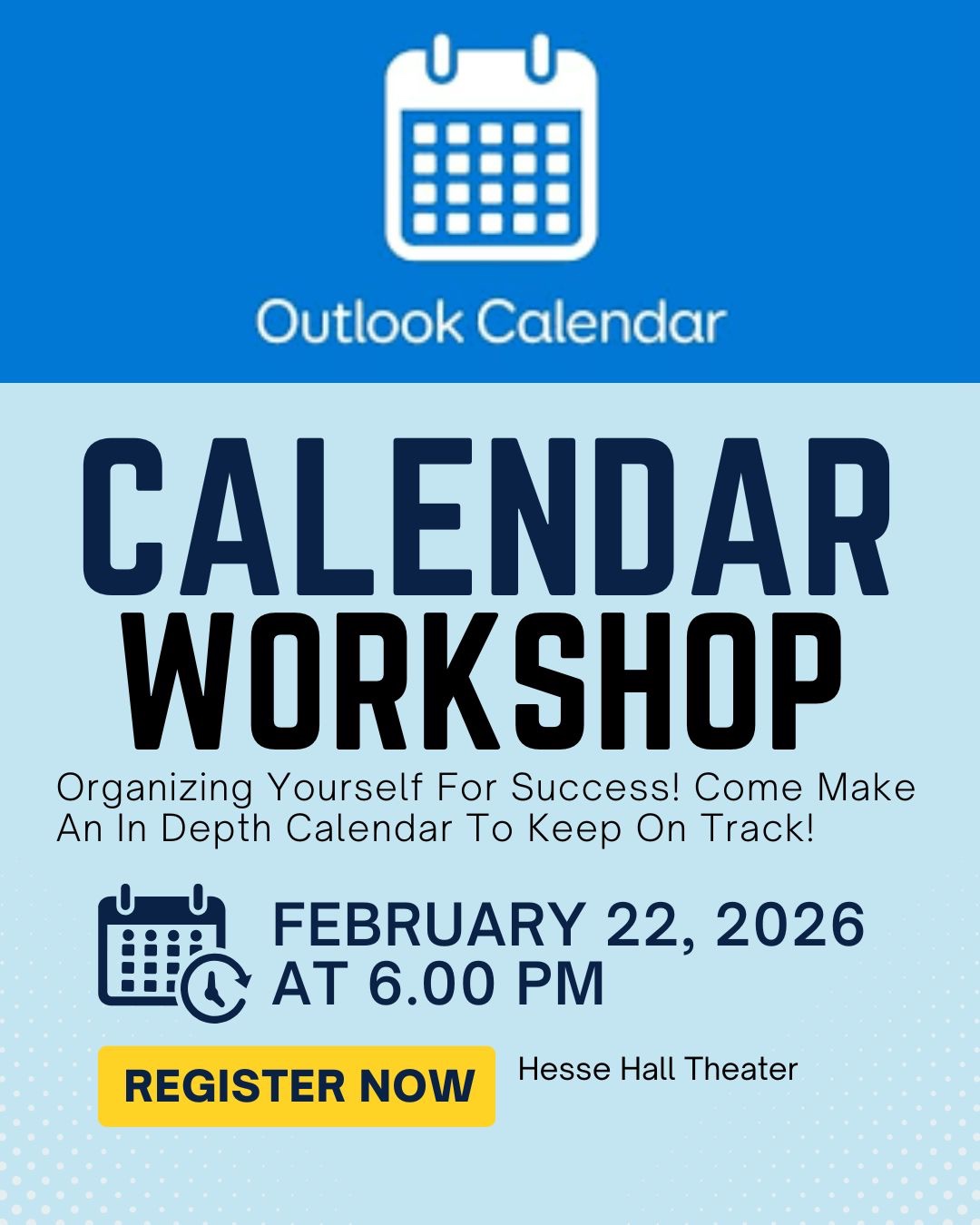 Organize Yourself For the Future!! Come Create An In Depth Calendar To Help You Stay On Top Of Your Classes And Extracurricular Activities!!n—nEvent Details: https://campusgroups.monmouth.edu/rsvp?id=375875