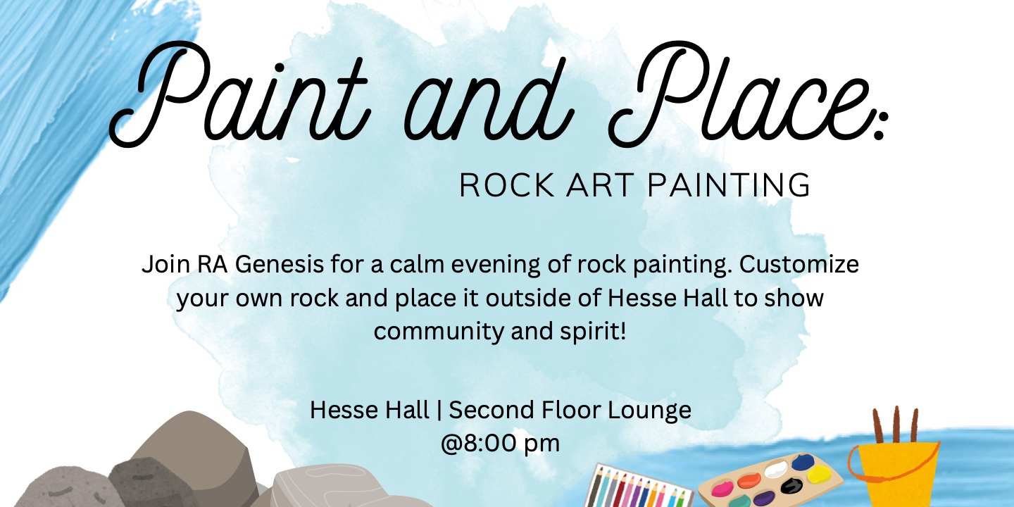 Join RA Genesis for a calm evening of rock painting. Customize your own rock and place it outside of Hesse Hall to show community and spirit!n—nEvent Details: https://campusgroups.monmouth.edu/rsvp?id=375800