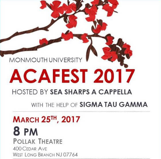 Founded in 2013, Sea Sharp A Cappella became Monmouth University’s first and only a cappella group. Creating sound with only their voices, the Monmouth University Sea Sharps have brought the a cappella scene to campus sharing their versions of popular tunes and classic ballads. Over the short period of time, they have participated in the ICCA’s, been featured on MTV, and hosted many concerts including Acafest which features collegiate a cappella groups from all over the tri-state area such as 8 to the Bar from Drexel University, The Trentones from The College of New Jersey, the NJIT Gigabeats, and many more! For tickets, please contact museasharps@gmail.com.