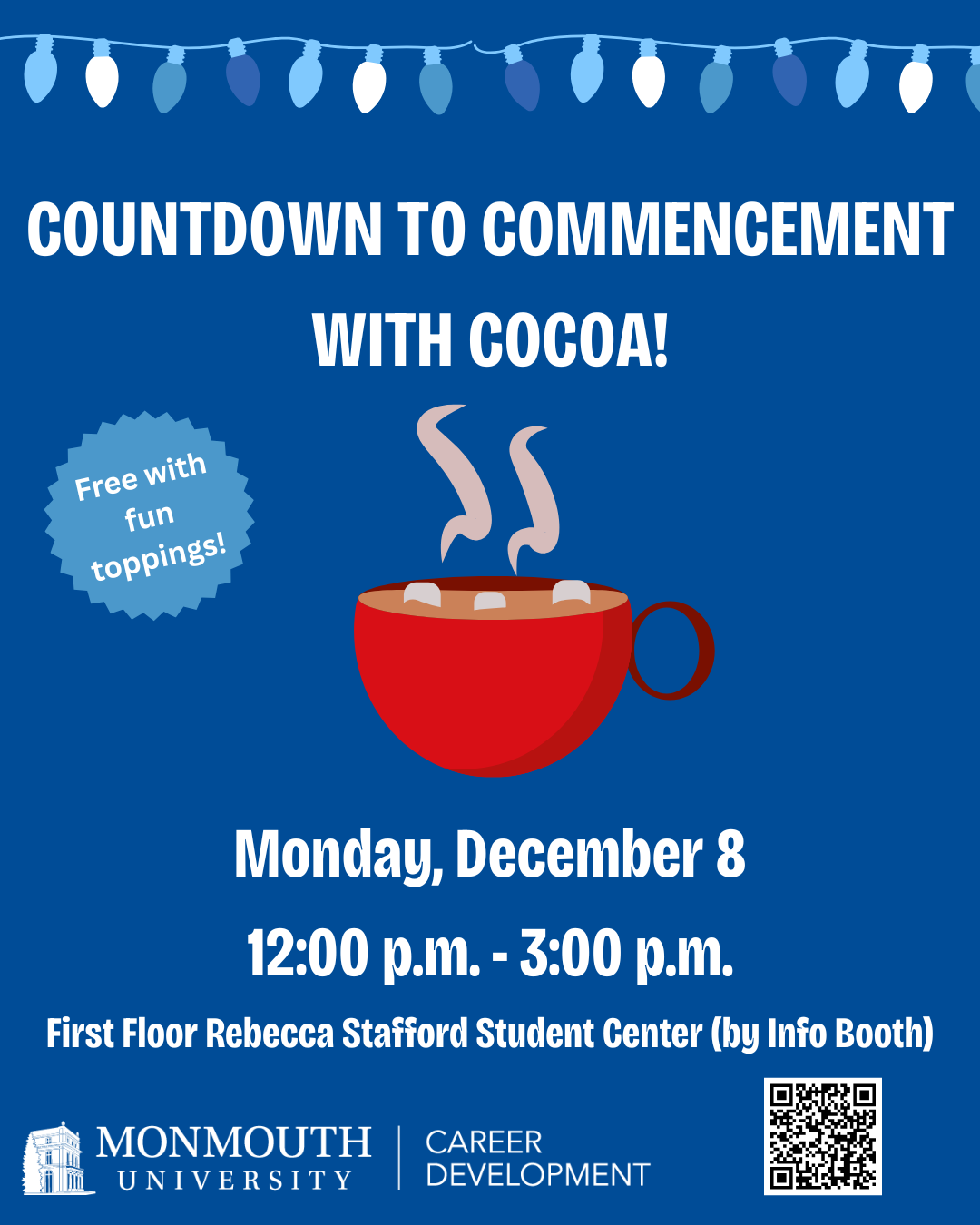 Tis’ the season for FREE HOT CHOCOLATE!nnJoin Career Development on the first floor of the Rebecca Stafford Student Center 12:00 P.M. to 3:00 P.M. for a FREE Hot Chocolate Bar!nnMeet a Career Coach & ask questions regarding Career Development & appointment set up!nn CLASS OF 2026: Learn about the fun events planned for you in […]