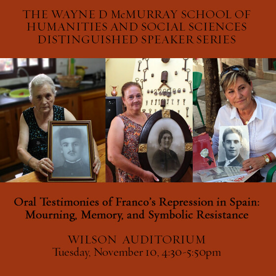 The Wayne D. McMurray School of Humanities and Social Sciences Distinguished Speaker Series: Oral Testimonies of Franco’s Repression in Spain: Mourning, Memory, and Symbolic Resistance Lecture presented by Dr. Francie Cate-Arries, Professor of Hispanic Studies, The College of William & Mary.