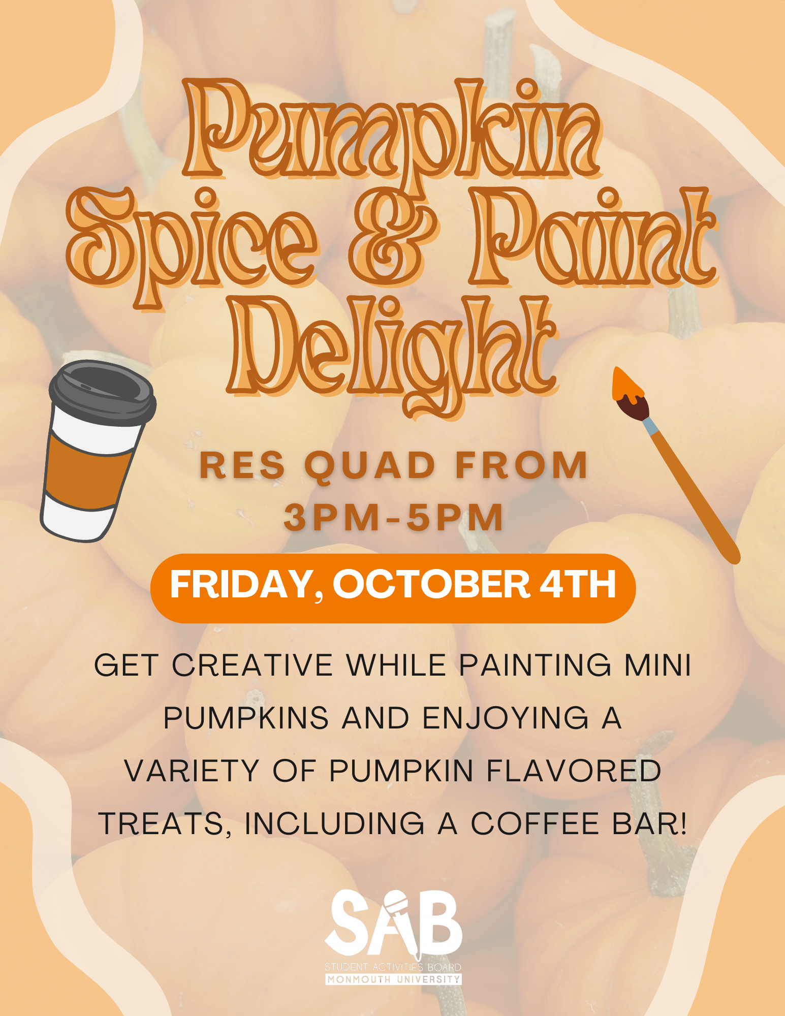 Get creative while painting mini pumpkins and enjoying a variety of pumpkin flavored treats, including a coffee bar! |