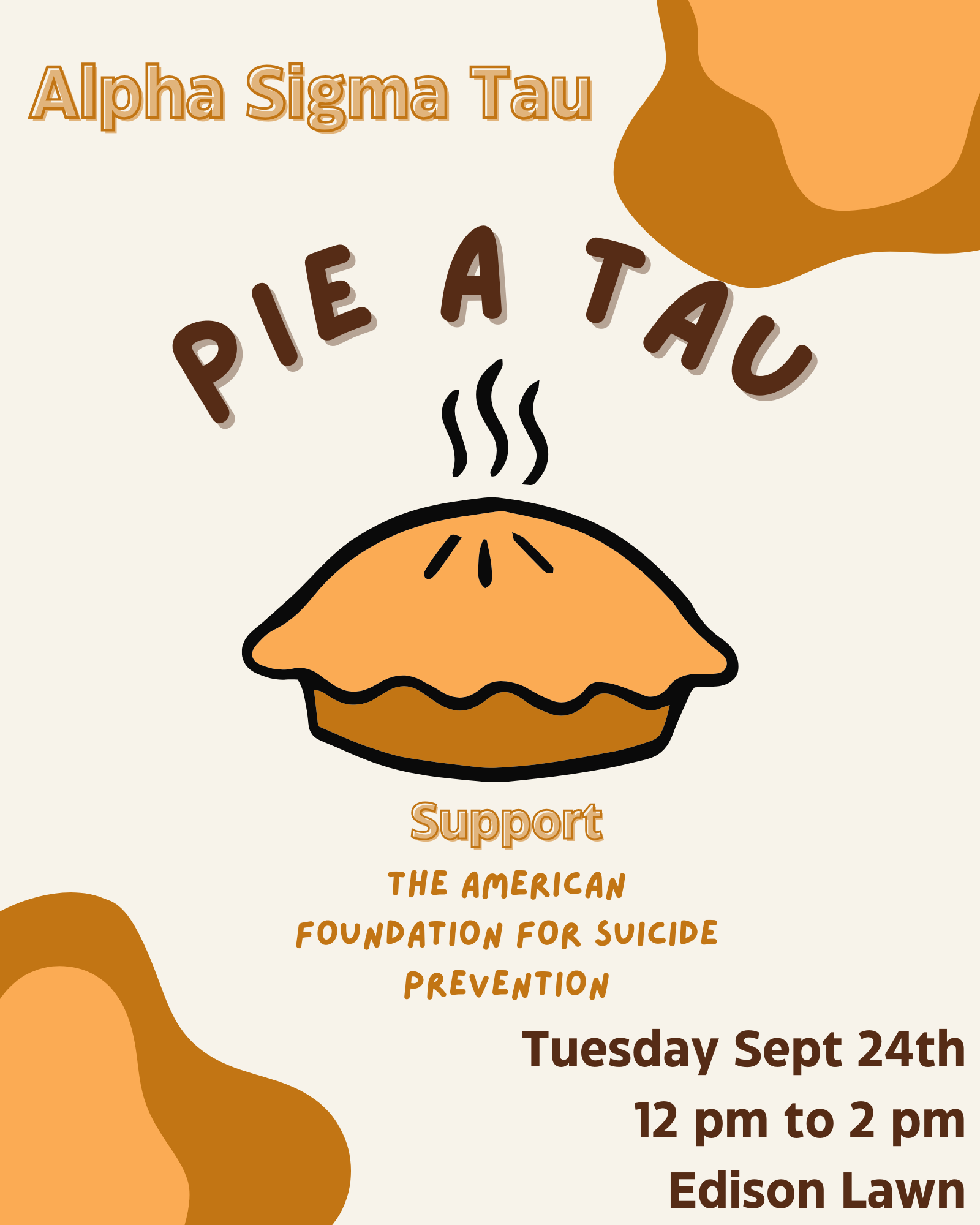 Alpha Sigma Tau is hosting a tabling event where sisters volunteer to be whip creamed in the face to raise money for philanthropy. The funds will be donated to one of our local philanthropies, The American Foundation for Suicide Prevention. The sisters of our chapter recognize and support those who have been affected by suicide somehow. […]