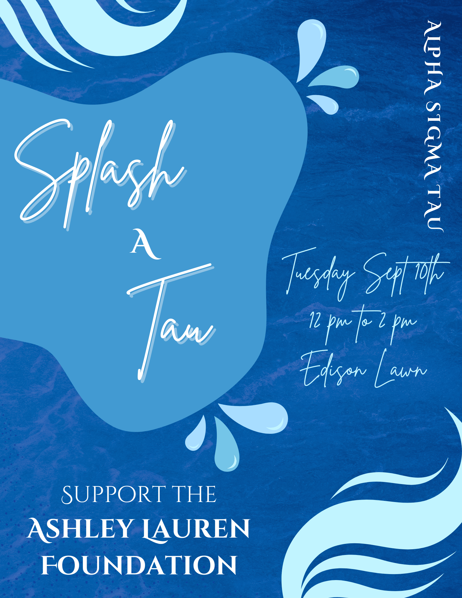 Tabling event hosted by Alpha Sigma Tau to raise money for our local philanthropy, The Ashley Lauren Foundation. Water balloons will be sold for $2 each. |