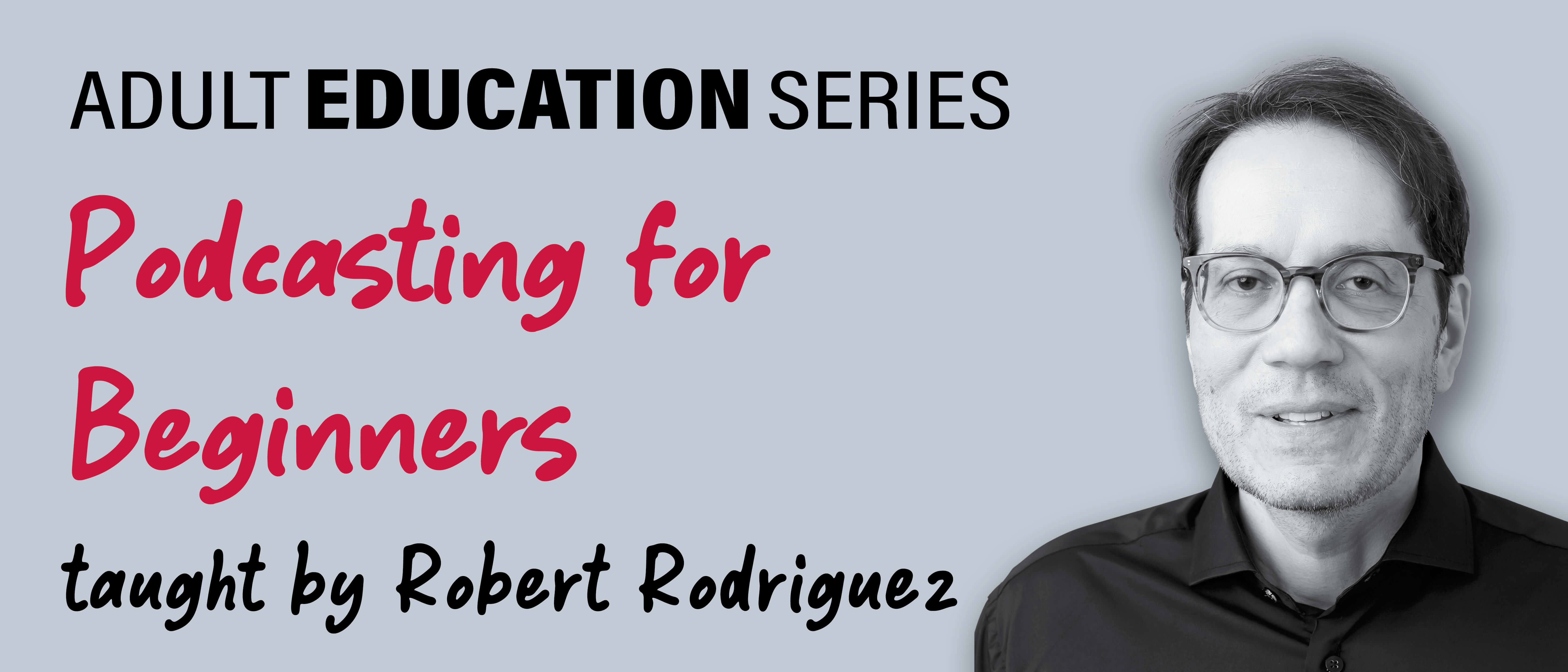 In this two-session virtual course taught by Robert Rodriguez, students will learn how to produce a podcast from the planning stage to the final upload. The two sessions will focus on developing a concept, basic recording technology, post-production and launching onto Apple & Spotify. No previous podcasting experience is required.
