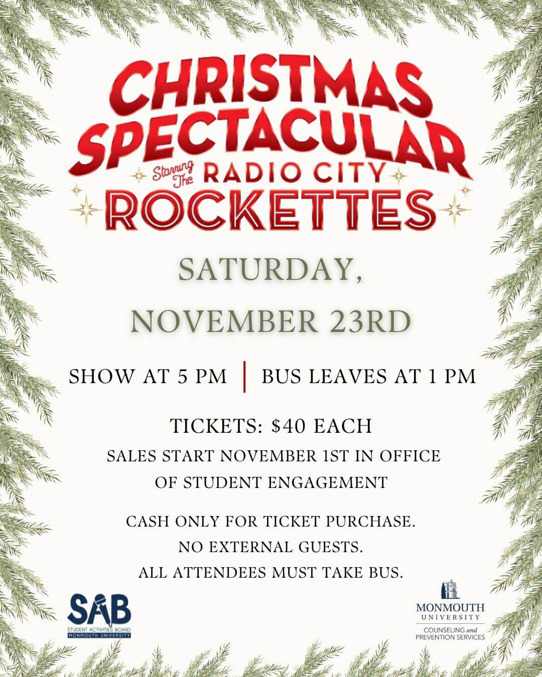 Join SAB and CPS for a trip filled with the holiday spirit and traditions! Tickets are $40 and sold in the Office of Student Engagement beginning on Friday, November 1st. The show is on Saturday, November 23rd at 5pm. Bus leaves campus at 1pm. Ticket sales are cash only and no external guest tickets will […]