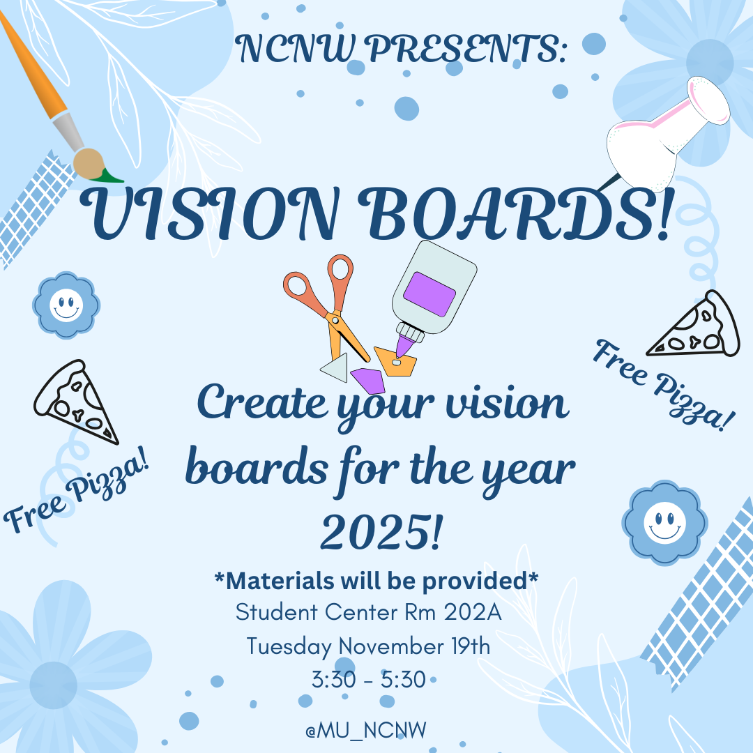 This event will allow students to join the NCNW members and create vision boards for the year 2025. Students will have an opportunity to share their visions with the group and connect. There will also be free pizza. *Materials will be provided*