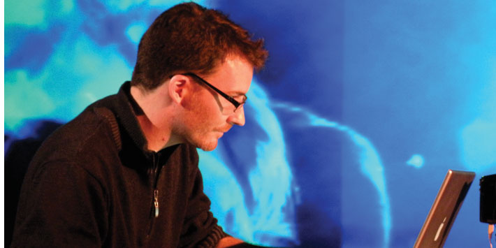 An active visual and musical collaborator, DuBois is the co-author of Jitter, a software suite for the real-time manipulation of matrix data developed by San Francisco-based software company Cycling’74. He appears on nearly twenty-five albums both individually and as part of the avant-garde electronic group The Freight Elevator Quartet. He currently performs as part of Bioluminescence, a duo with vocalist Lesley Flanigan that explores the modality of the human voice, and in Fair Use, a trio with Zach Layton and Matthew Ostrowski that looks at our accelerating culture through electronic performance and remixing of cinema.