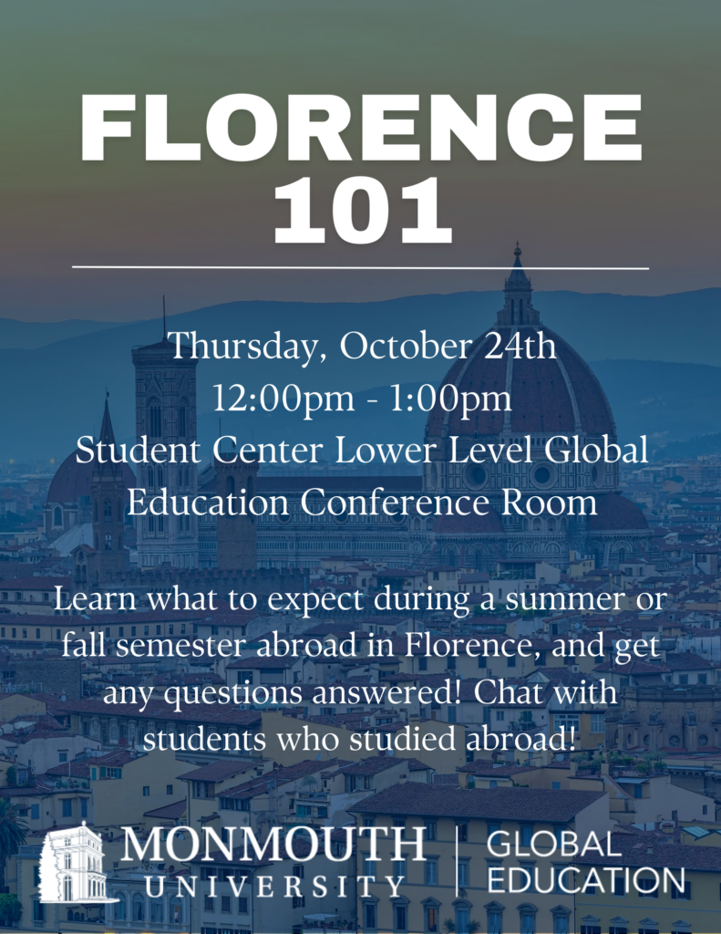 Why: Learn what to expect in Florence, and get any questions answered! Chat with students who studied abroad!