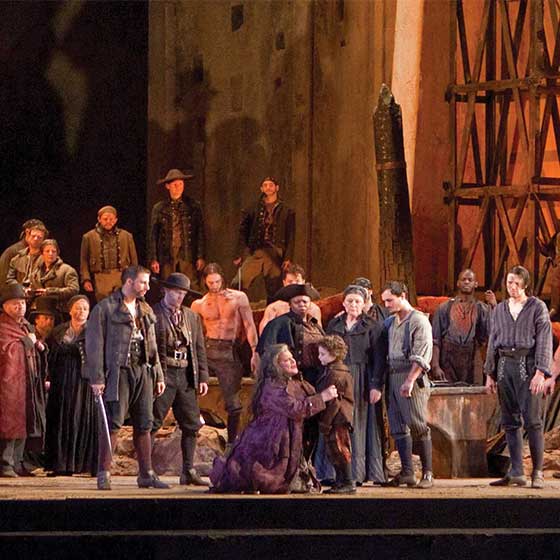 Soprano Anna Netrebko’s dramatic and vocal skills are on full display in her next new role at the Met—Leonora, the Verdi heroine who sacrifices her own life for the love of the gypsy troubadour. Tenor Yonghoon Lee sings the ill-fated Manrico, baritone Dmitri Hvorostovsky is his rival, and mezzo-soprano Dolora Zajick is the mysterious gypsy with the troubled past. Marco Armiliato conducts Sir David McVicar’s Goya-inspired production.