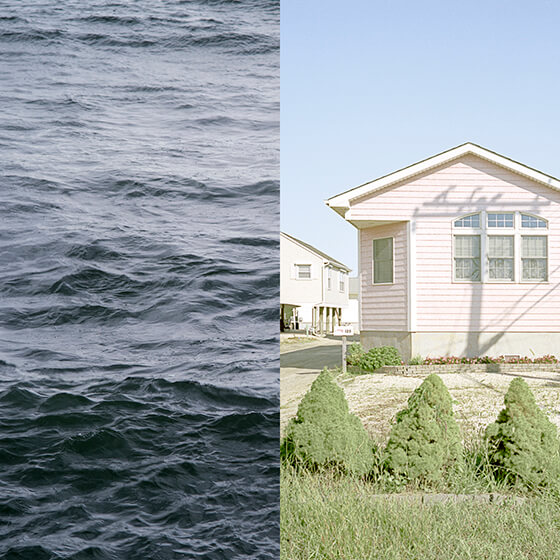 Ludak concentrates on the abstraction of the coastline affected by rising sea levels from different vantage points and the faces of fisherman with an emotional and economic connection to the ocean as a source of sustenance. Wagner considers what people do to save their homes, photographing homes being raised on jenga-like supports before coming to rest on new foundations in response to Hurricane Sandy.