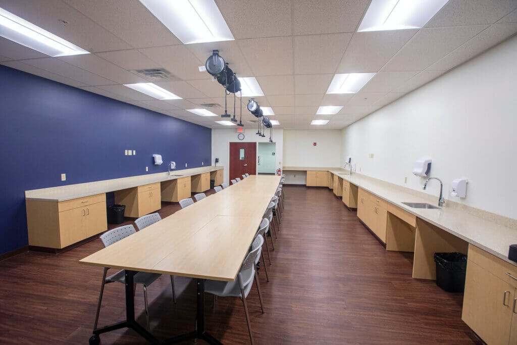 This multi-functional space enhances our students’ learning by providing ample room and technology for training and studying. Here, students will learn and practice orthotic fabrication, study anatomical structures, engage in learning activities to understand the science of movement, and practice skilled OT assessments and evaluations.