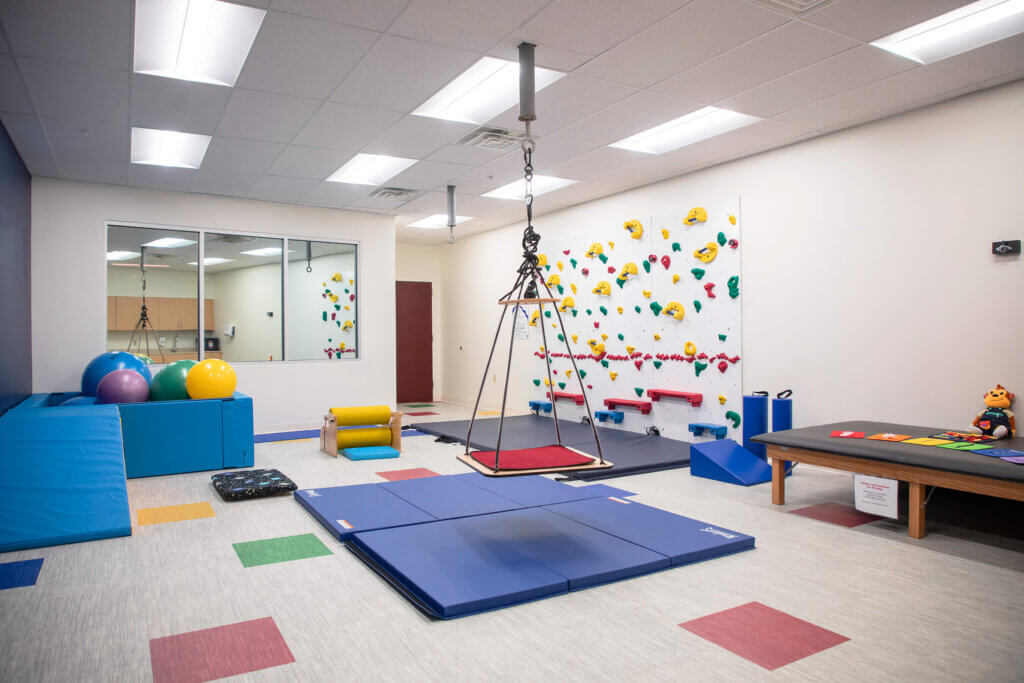 With a rock-climbing wall, ball pit, slide, and other kid-friendly activities, our Pediatric Lab provides a safe, engaging, and fun space while our students learn skilled techniques to work with children on their primary occupation—play. In addition to being a colorful and interactive treatment space, this lab contains an observation room that our students will use to observe and learn about children’s behaviors, actions, and movements, without intruding on the children’s playtime.