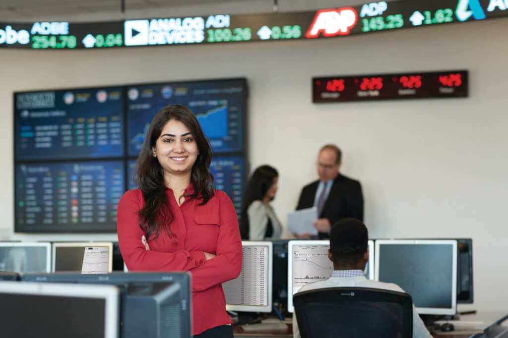 The finance concentration builds both technical and leadership skills to help you succeed in corporate finance, banking, investments, and more. You’ll have the flexibility to choose courses that align with your specific interests in the overarching field. Plus, you’ll have a chance to develop real-world trading and analyst skills at Monmouth’s Bloomberg Finance Lab.