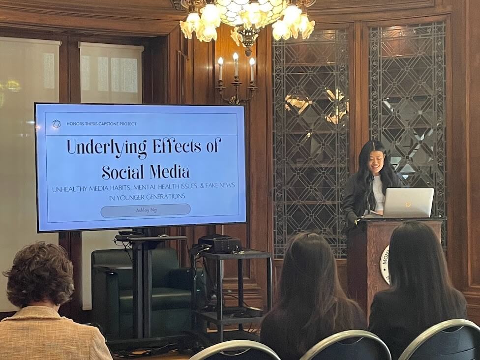 Each year, the Honors School hosts Fall and Spring Research Conferences featuring thesis and capstone projects produced by our students. Students present their research to an audience which will include their peers, family members, and University faculty and administrators. Student presenters come from disciplines across the university, with projects covering unique topics. Each student is guided by a chief advisor known as a first reader, and some students select a second reader as well. Below you will find a link to the abstract book and video recordings of the presentations.