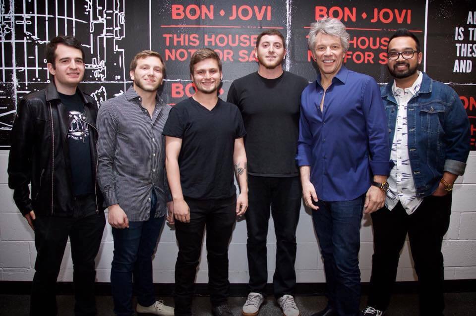 In April, Jonathan Chang-soon ’14 (below, far right) and Monmouth senior Zach Sandler (second from left) opened for Jon Bon Jovi HN ’01 in front of a sold-out crowd at the Prudential Center.