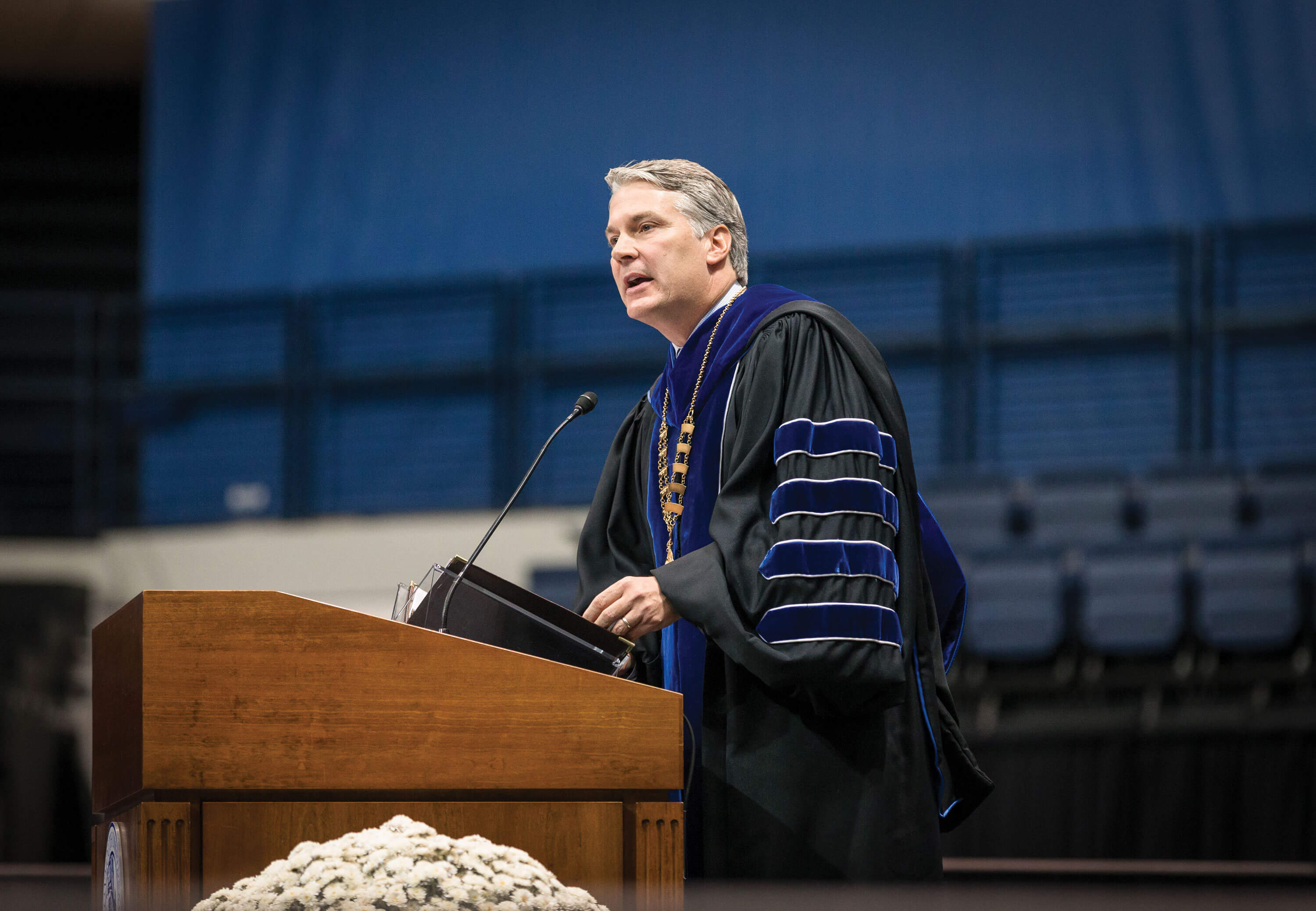 During his installation address, Leahy invoked the words of President John F. Kennedy, who during a 1963 speech at Amherst College asked, “What good is a private college or university unless it is serving a great national purpose?”