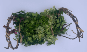 Working with materials they had available in the place they were quarantined—everything from sticks to leaves to fabric—the students created the masks seen below.